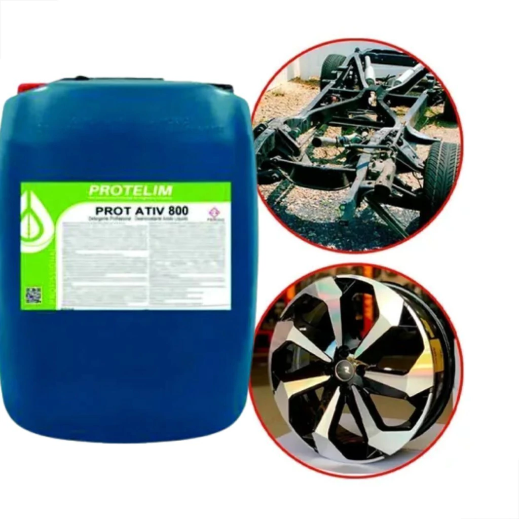PROT ATIV 800 é um detergente desincrustante ácido, super concentrado, para remoção de óxidos e abrilhantador de metais. Pode ser utilizado em motores, rodas e chassis de veículos em geral.