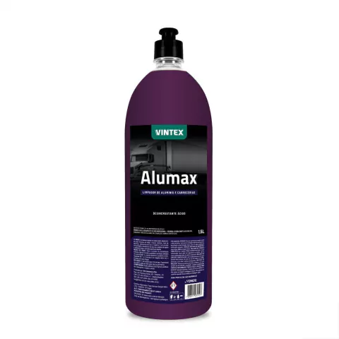 Alumax é um desincrustante de caráter ácido, desenvolvido para limpeza de rodas, chassis, motores, baús de alumínio, carrocerias de inox e madeira. É um produto concentrado e econômico em seu uso, atuando na sujeira e retirando toda a camada superficial aderida.