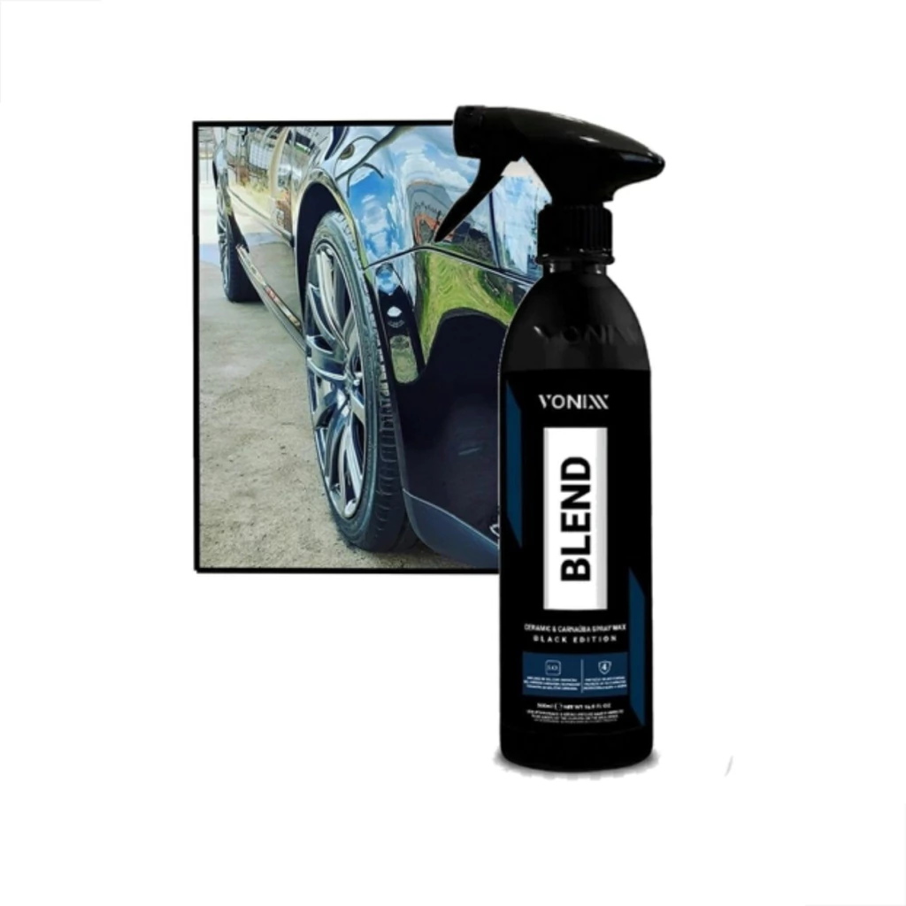 Blend Ceramic & Carnaúba Spray Wax Black Edition é uma cera híbrida, composta por SiO2 e pela mais pura carnaúba tipo 1 que protege a superfície veicular por até quatro meses, em especial as pinturas escuras. O produto promove a resistência cerâmica, brilho quente da carnaúba e hidrorrepelência.