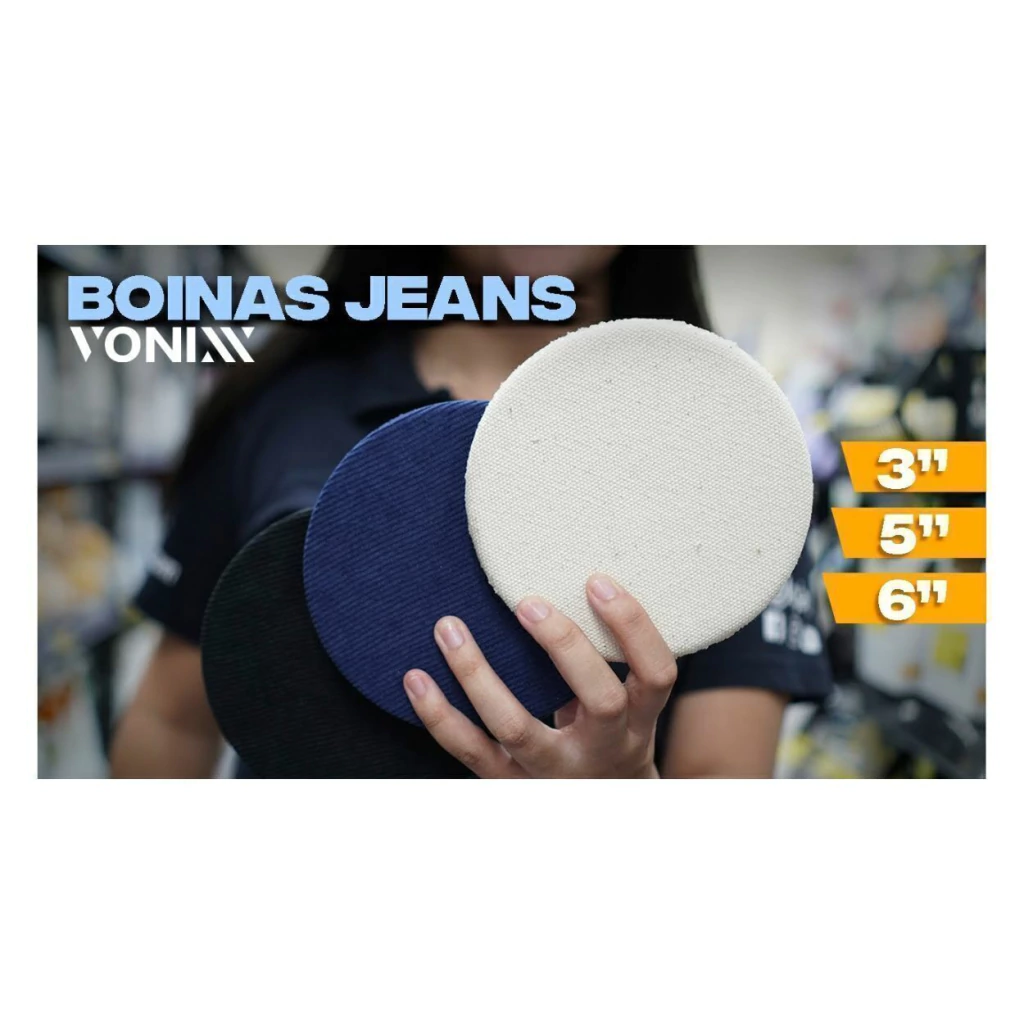 A BOINA JEANS VOXER BRANCA CORTE é indicada para a primeira etapa do polimento automotivo. Utilizada na etapa de corte em conjunto com politrizes roto-orbital e rotativa, é capaz de remover cascas de laranja e defeitos profundos correspondentes a lixa de 1500 grit.