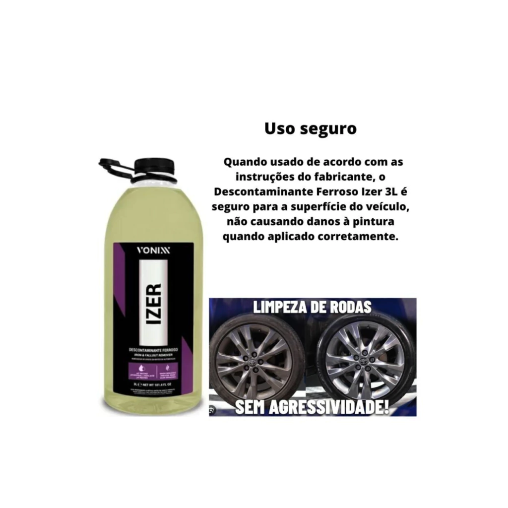 Izer é um descontaminante ferroso de pH neutro que remove fuligem de freio oxidado em rodas, age na eliminação de oxidação de material ferroso da pintura e demais partes externas do veículo e ajuda na remoção de pontos de ferrugem em partes cromadas. No motor, auxilia na remoção da oxidação de partes metálicas, deixando-o com aspecto renovado. O produto não é indicado para uso em superfícies zincadas.