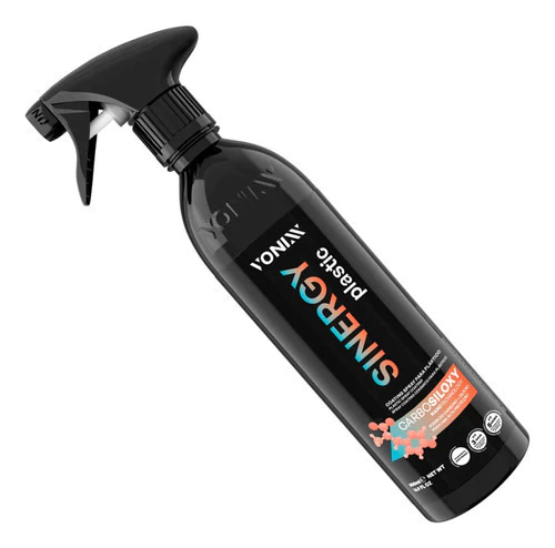 SINERGY PLASTIC SPRAY COATING é um protetor a base dagua, que contém carbono e silício agindo em sinergia para promover proteção de até três anos pláticos internos e cinco meses nos plásticos externos do veículo. A tecnologia CARBOSILOXY, faz com que o carbono presente na composição faça uma dupla fixação do silício no plástico, afim de aumentar a durabilidade.